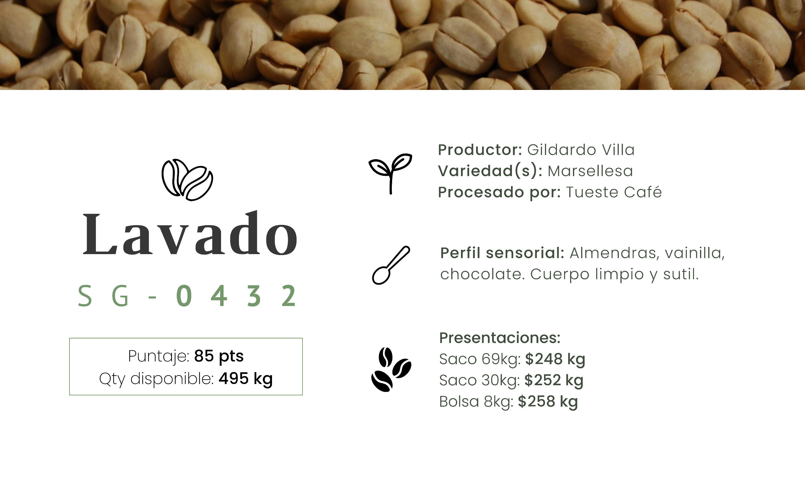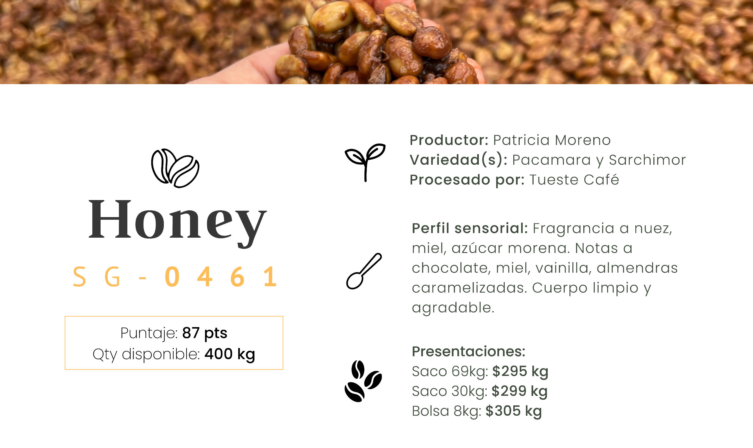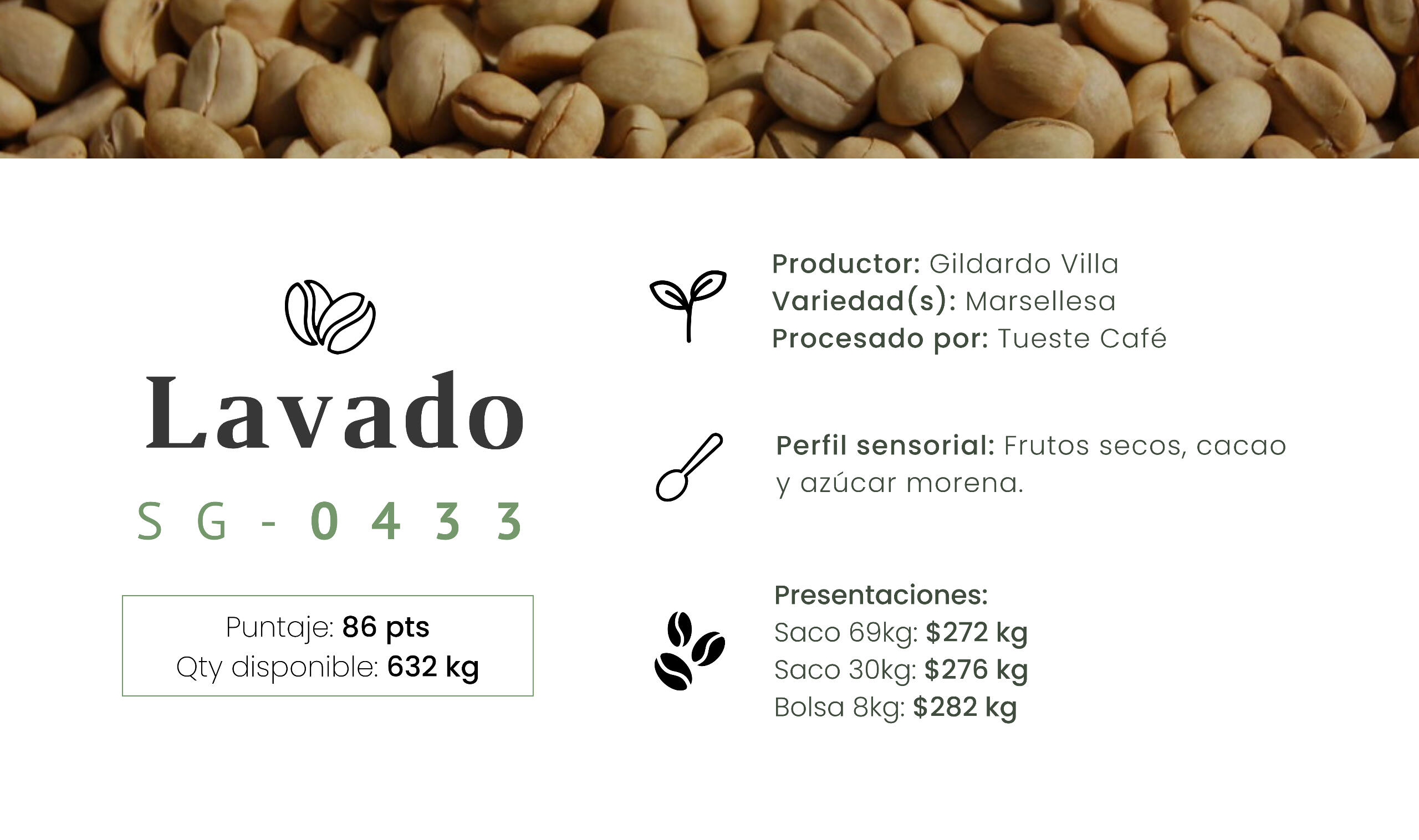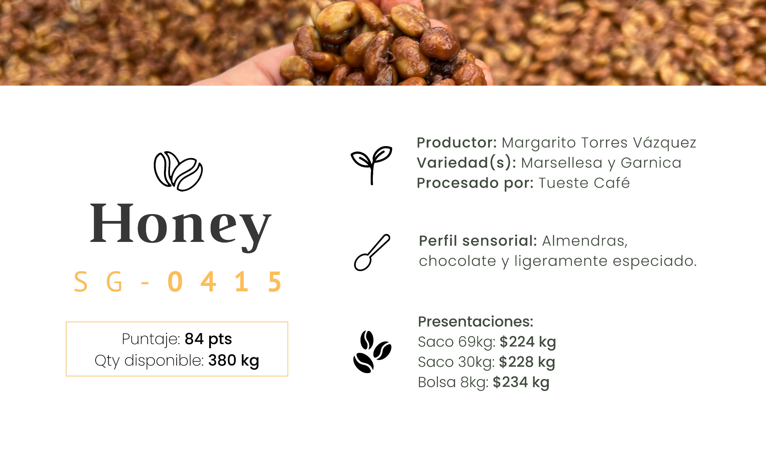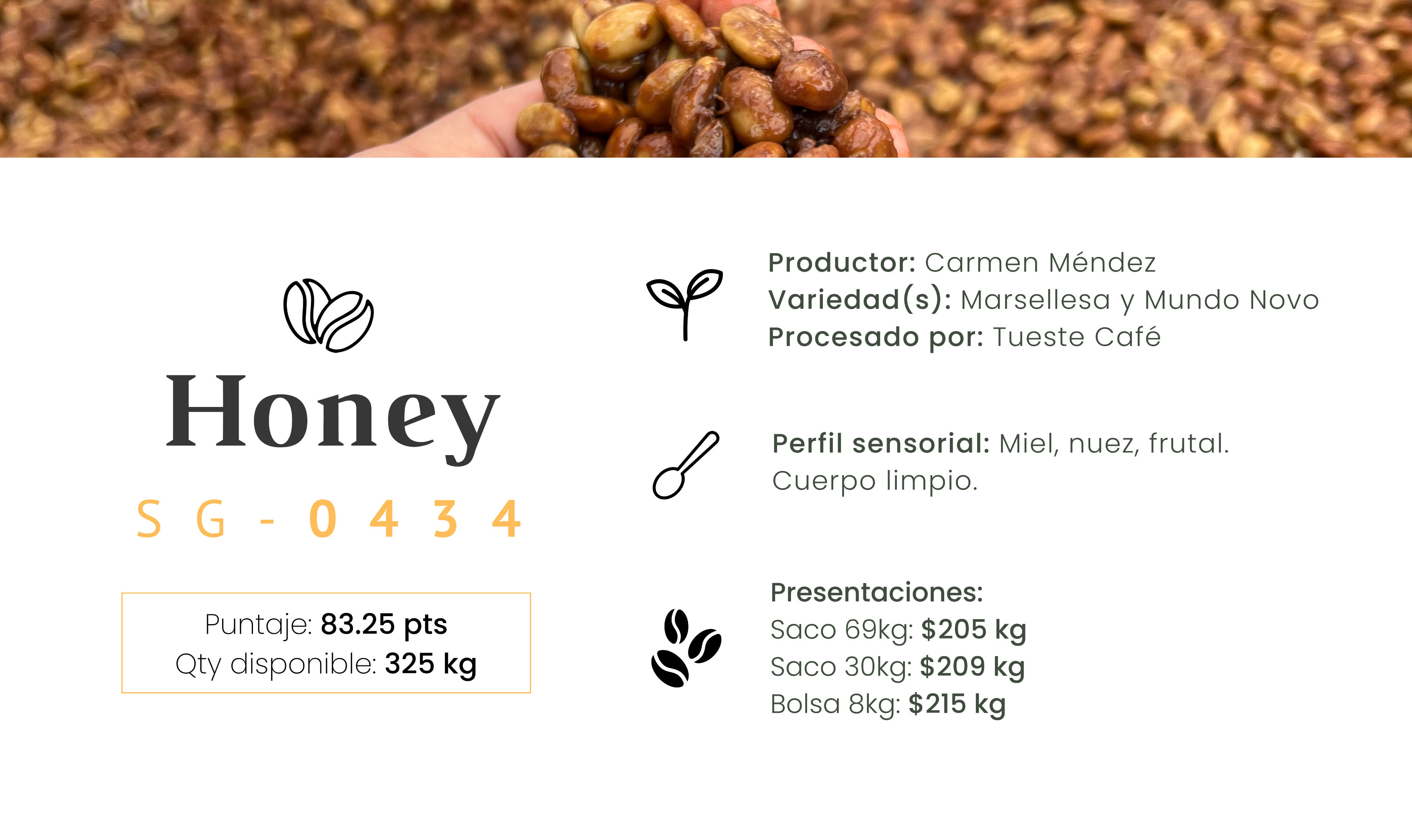 El café es trabajado en el beneficio seco al momento de tu compra para garantizar estabilidad y frescura.