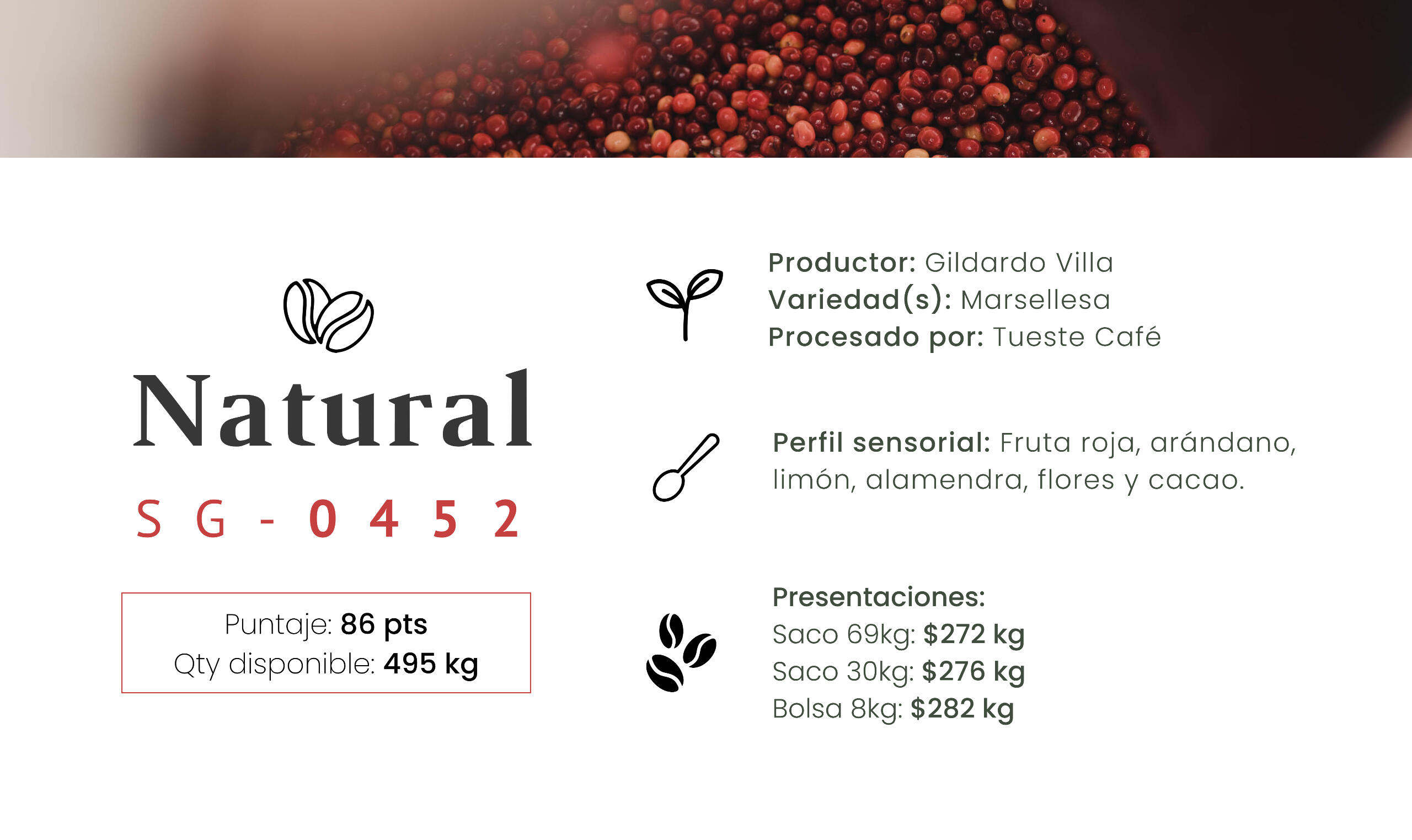 30kg por lote¿Cómo se envía el café?